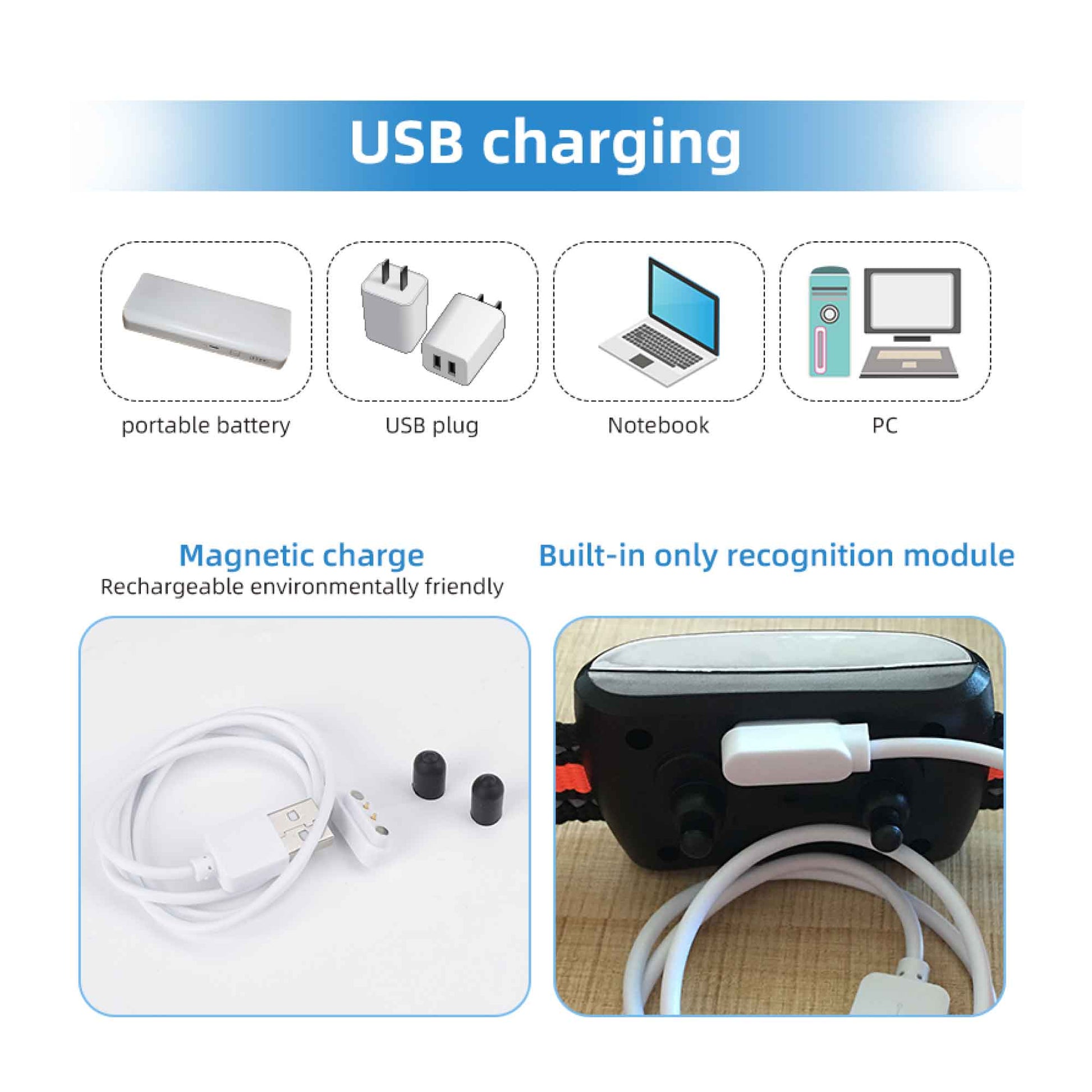 Magnetic Charging and Waterproof: The collar contains a built-in USB rechargeable battery. It can be fully charged in about 2-3 hours and gave you 10-15 days of use. IP67Â waterproof level design and suit for dog swimming in summer and shower.