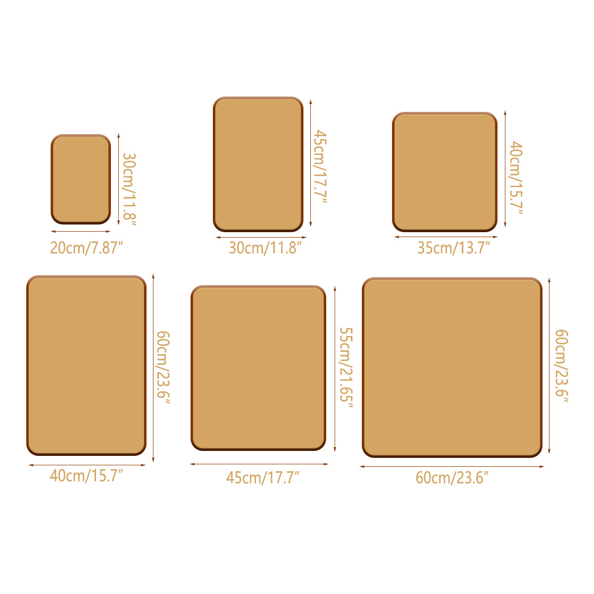 Sizes (approx.): 20x30cm, 30x45cm, 35x40cm, 40x60cm, 45x55cm, 60x60cm