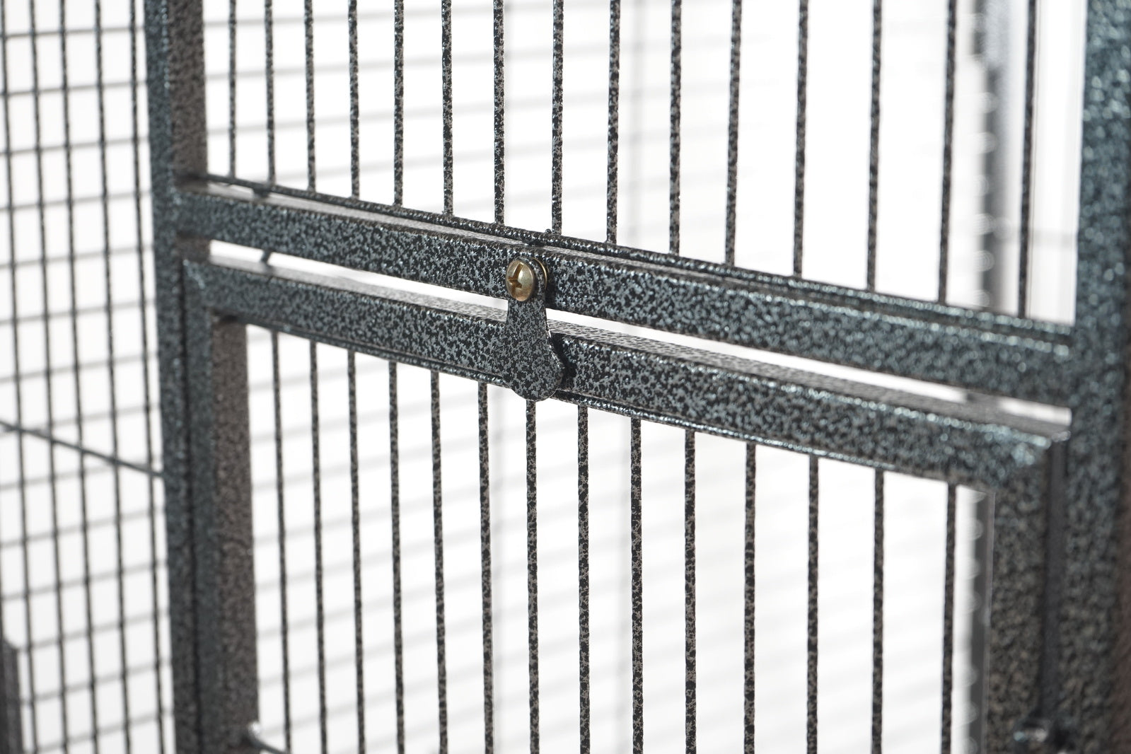 Taking care of bird is made easy with one large access door and two side doors to reach inside the five food and water bowls and take them out for refilling or cleaning. Cleaning is hassle-free with the slide-out top and bottom tray that can also be removed.